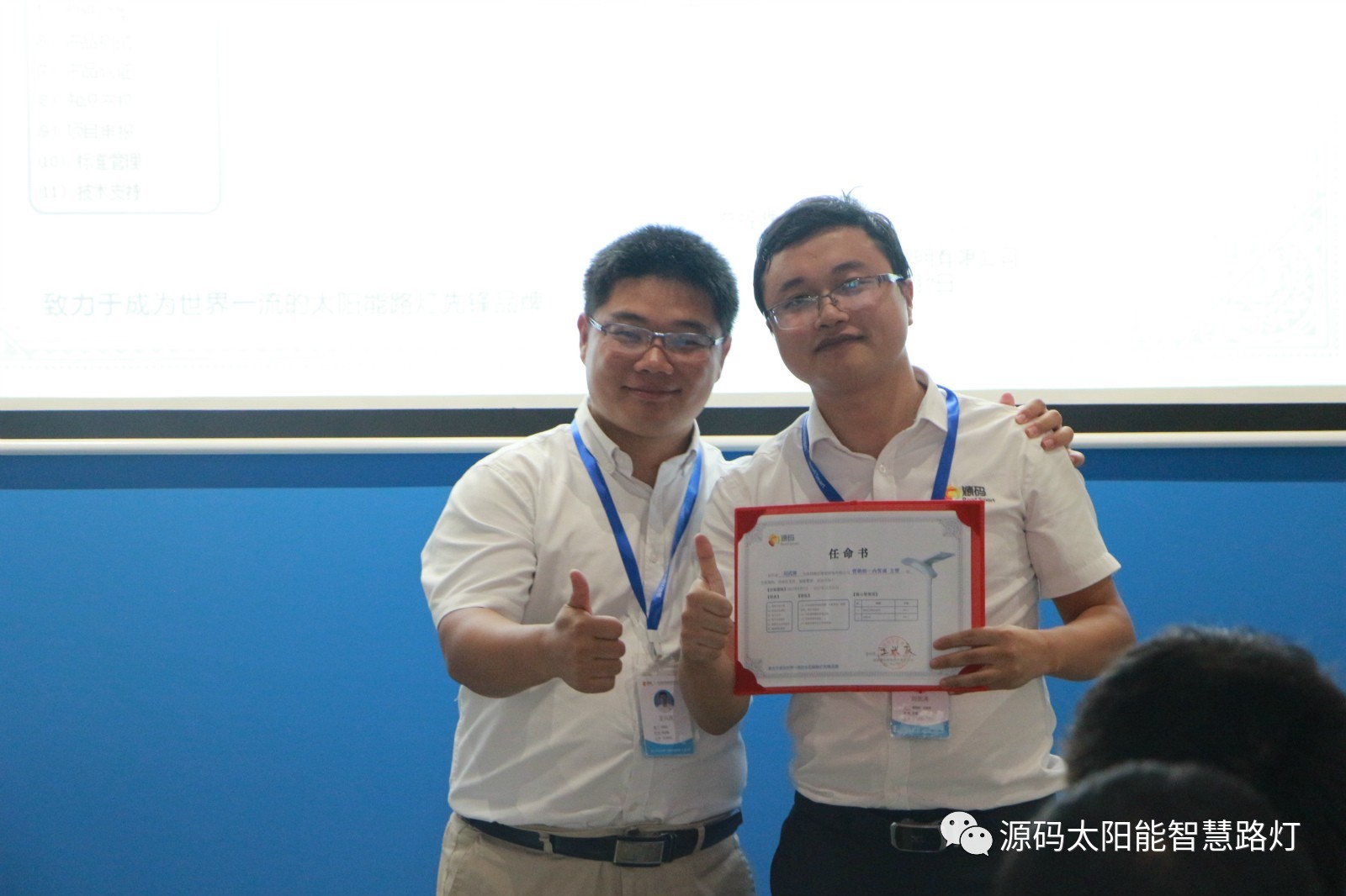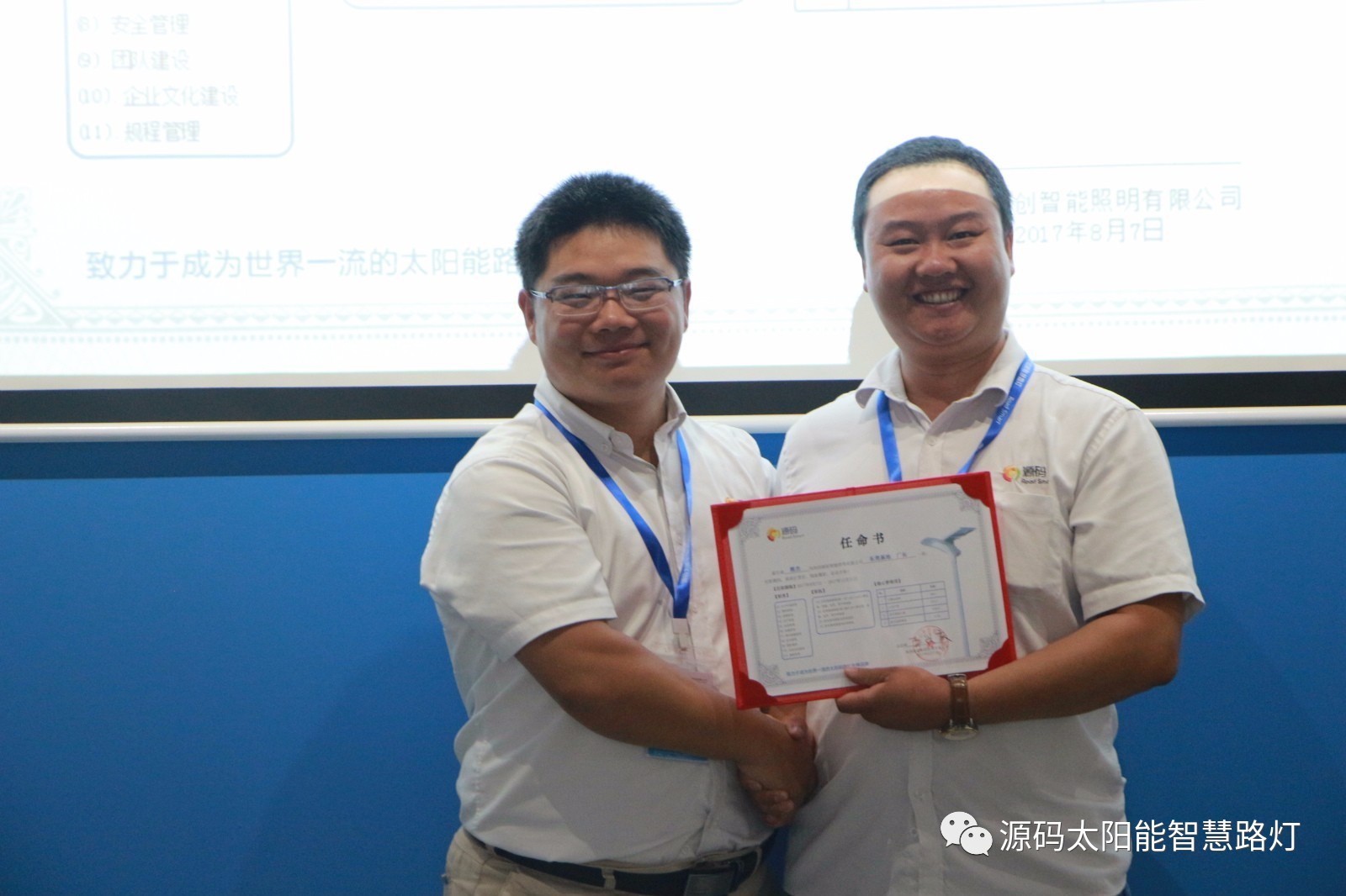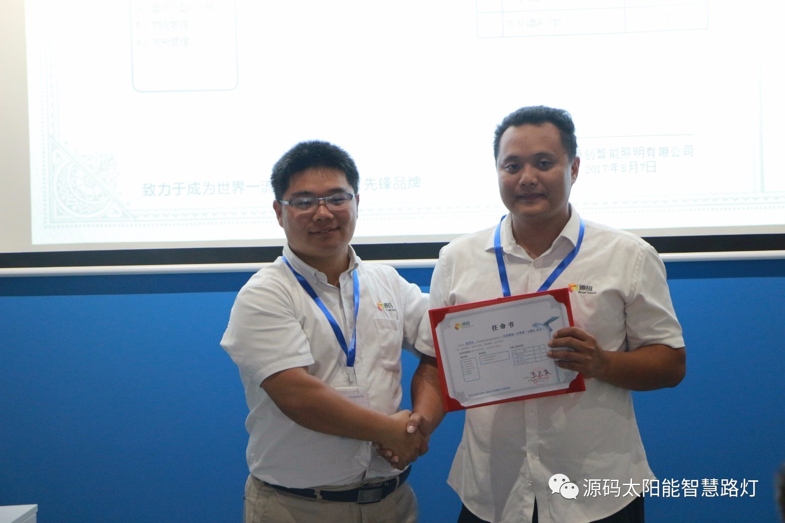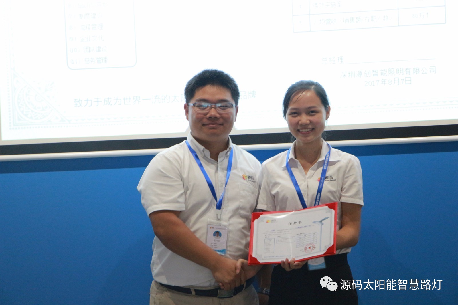 其次,由源碼人事主管劉柳女士宣讀任命書,源碼董事長王興慶先生為被任命人頒發(fā)任命書,此次大會(huì)共計(jì)任命干部十一名,任期皆為2017年8月7日至2017年12月31日。