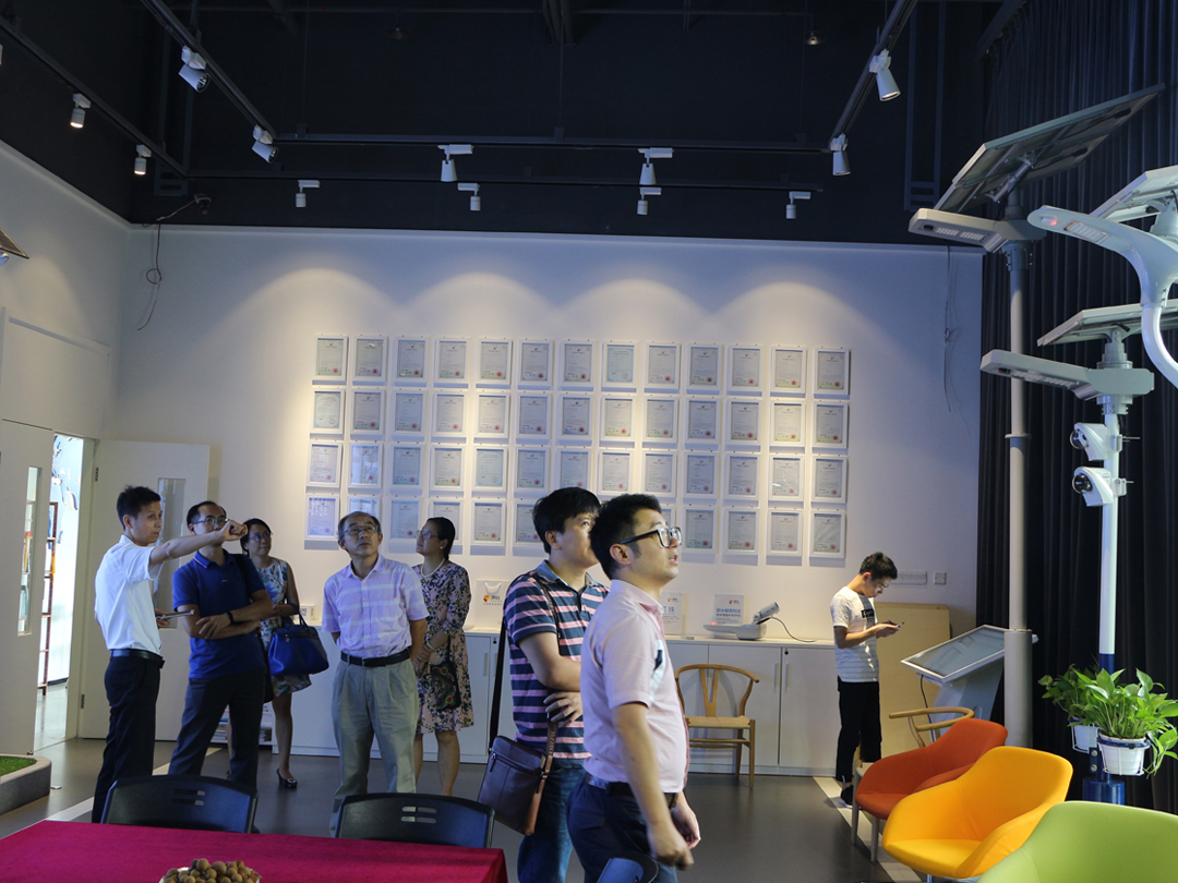 簽約后,郭院長帶隊參觀源碼展廳,在展廳內,源碼技術人員演示了源碼太陽能路燈的物聯網遠程控制技術,利用網絡實現遠程監控和控制燈具,通過采集的數據分析,實時調節燈光的明暗和色溫。通過手機APP藍牙連接燈具,讀取燈具狀態和參數設置情況,調整燈具的亮度,工作模式等,對源碼太陽能路燈進行遠程控制,此外,技術人員現場演示春繭燈的娛樂管理功能,當優美的音樂旋律從春繭燈中傳來,郭院長一陣稱贊。
